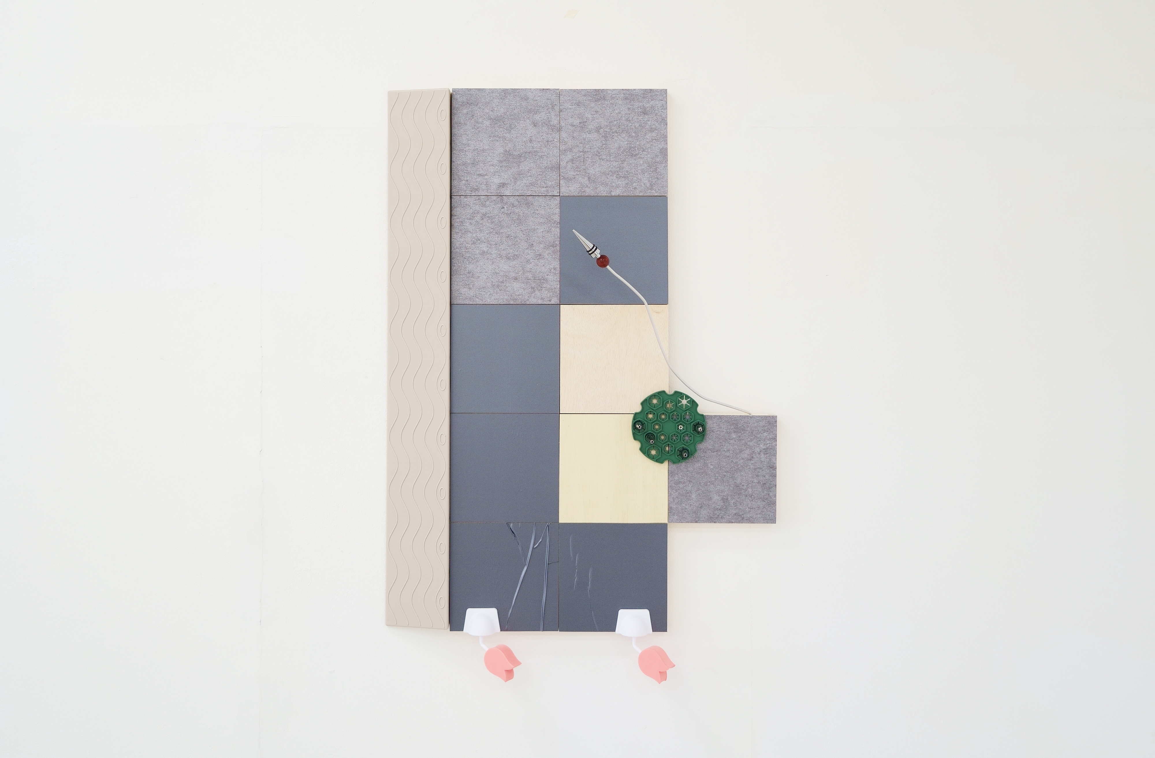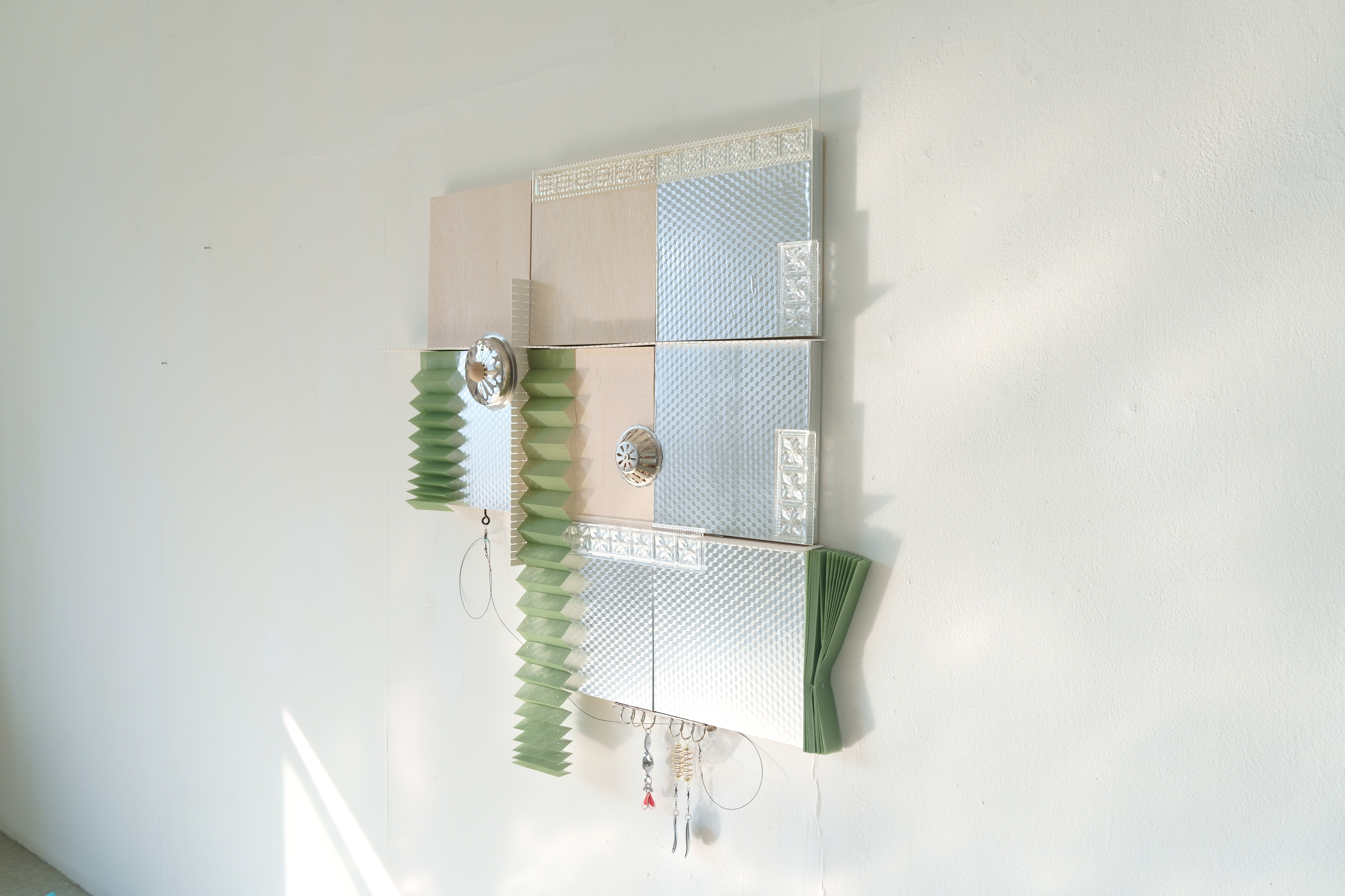 在異地短居的過程中,日常被重新組構,感知被迫調整。不同的居住文化、語言與環境,使生活節奏與空間意識生成新的理解。駐村期間的創作延續我對空間、物質與日常行為的關注,也回應「居住」的開放狀態。蒐集當地生活物件、二手物與拾得物,思考它們如何同時承載功能與感知、實用與想像。材料被重新組構、相互依附,形成介於結構與暫置間的形態;創作過程亦成為維護與照料的行為,延伸家務與身體的經驗。